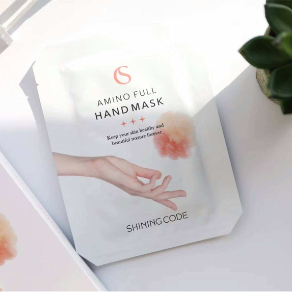 2、戴上手膜,以手輕壓膜布外層使手部緊密接觸膜布精華。